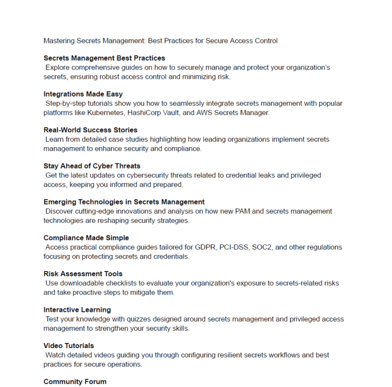 Explore comprehensive guides on how to securely manage and protect your organization’s secrets, ensuring robust access control and minimizing risk.